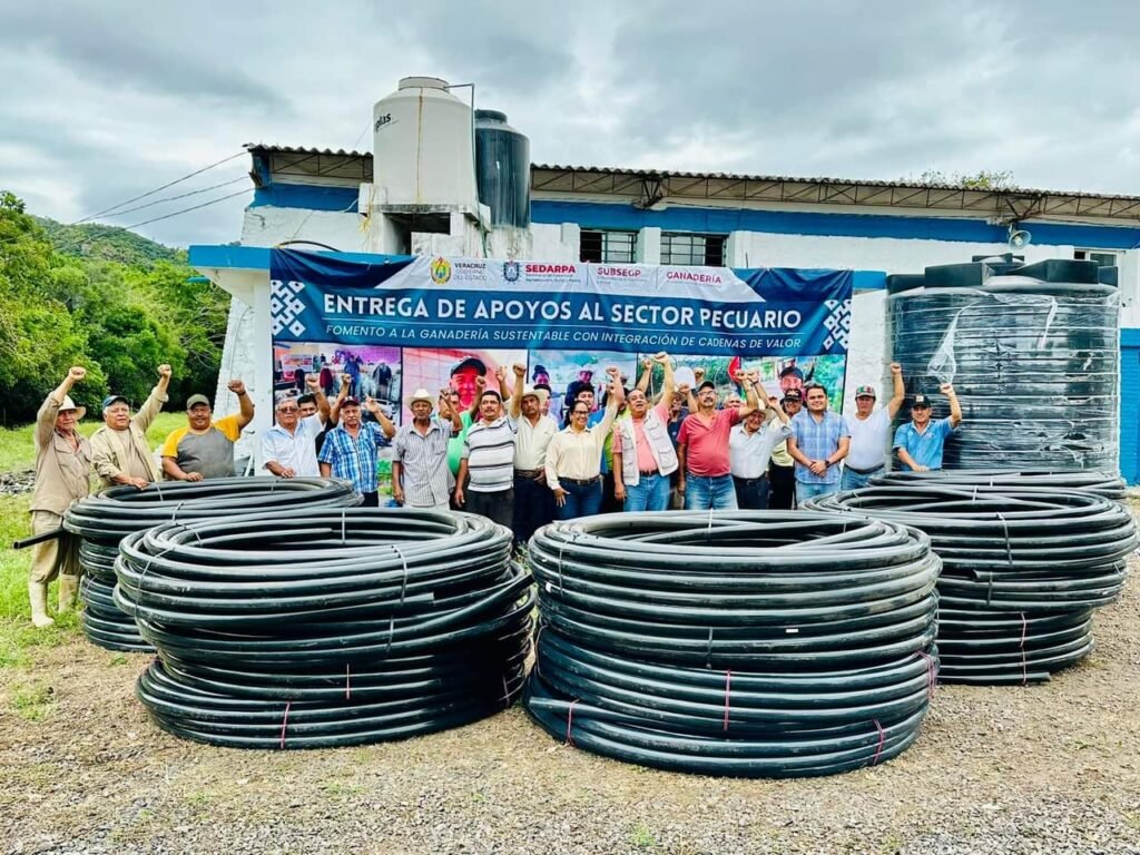 En beneficio de los ganaderos actopeños de la zona costa, el Ayuntamiento de Actopan, en colaboración con la Secretaría de Desarrollo Agropecuario, Rural y Pesca, (SEDARPA), realizaron la entrega de 2 mil metros de manguera de poliuretano de dos pulgadas para riego y una cisterna de 10 mil litros para apoyar las actividades del campo y ganadería de los ejidatarios de la localidad de Tinajitas.