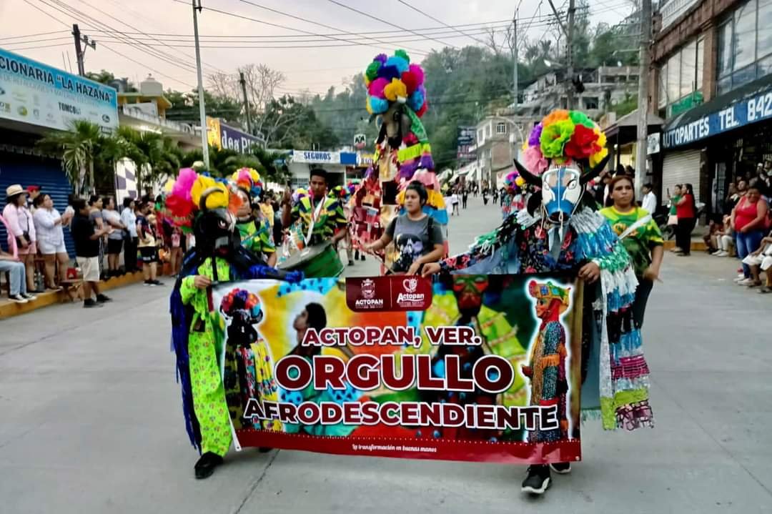 Con la participación de más de 1,500 personas, el contingente actopeño desfiló representando el orgullo afromestizo de Coyolillo