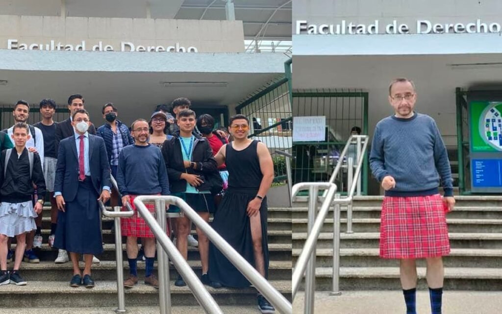 El profesor de la Facultad de Derecho, Arturo Hernández Abascal, asistió a dar clases con falda para romper estereotipos.