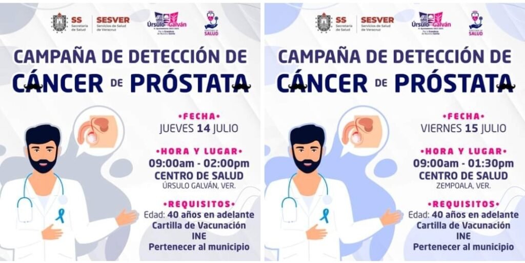 Procurando la salud de los caballeros galvanenses con una iniciativa de conciencia preventiva, por instrucciones del Alcalde, Lic. Eder Jero Hernández Lara, la Dirección Municipal de Salud en coordinación con la Jurisdicción Sanitaria No. 8 llevará a cabo dos jornadas de detección de cáncer de próstata mediante muestra sanguínea en las localidades de Zempoala y Cabecera Municipal, este próximo jueves 14 y viernes 15 de julio.