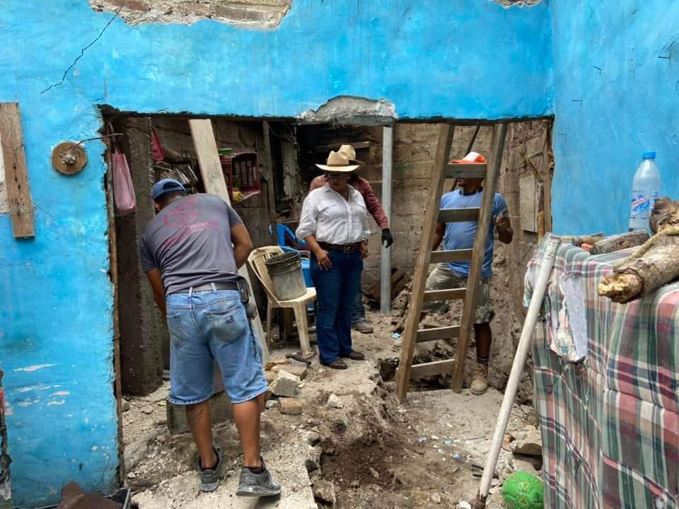 La Alcaldesa Mary López Callejas, acompañada de los regidores Rafael Moreno Utrera y Miguel Ángel López Rolón realizaron una supervisión de los trabajos de mantenimiento y rehabilitación de las casas más afectadas por la tormenta tropical “Alberto” en la colonia Santa Cruz de la cabecera municipal.