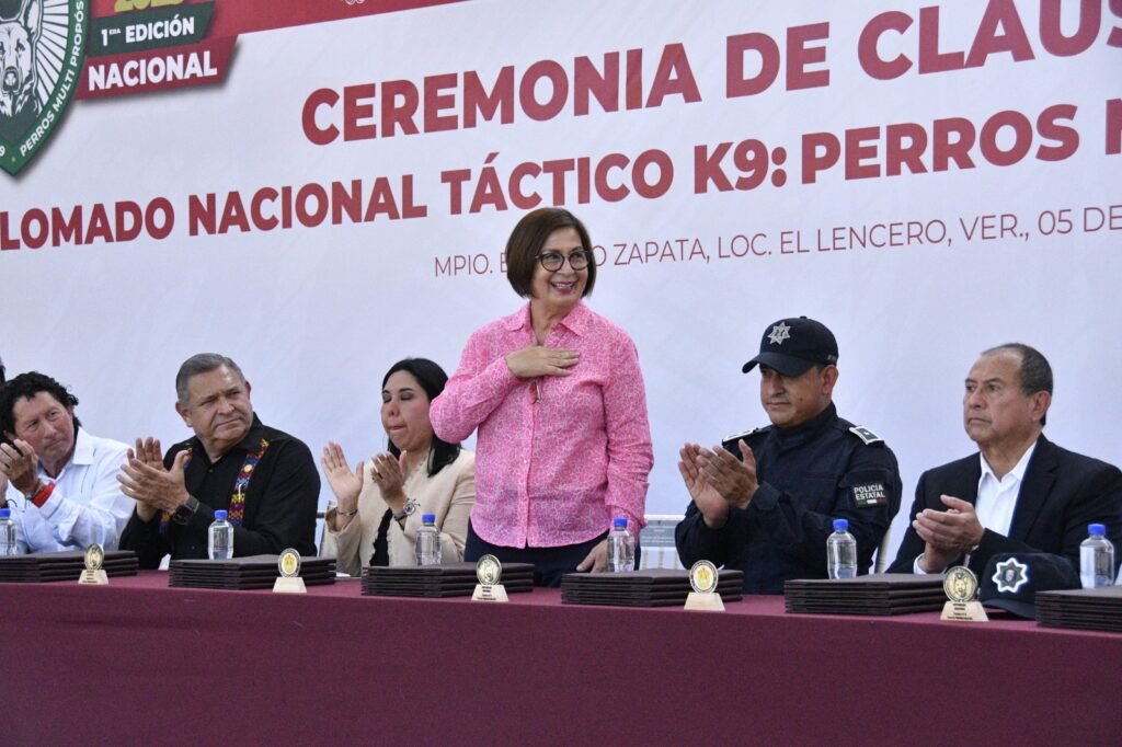 Al presenciar la ceremonia de clausura de la primera edición del Diplomado Nacional Táctico k9: Perros Multipropósitos, la Presidenta de la Mesa Directiva del Congreso subrayó el esfuerzo que hace la Secretaría de Seguridad Pública (SSP) en la formación y profesionalización de cuerpos de élite, puesto que en estos cursos se fortalecen las técnicas en detección de narcóticos, artefactos explosivos, búsqueda de personas, guardia y protección, así como la capacitación constante de elementos caninos.