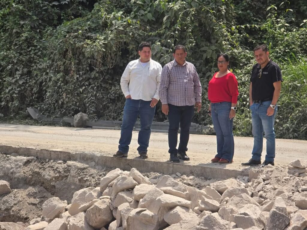La Alcaldesa Mary López Callejas, acompañada de los regidores Rafael Moreno Utrera, Miguel Ángel López Rolón y Alan Ruiz Aguilar realizan las visitas de supervisión para comprobar que los trabajos se están realizando de la mejor manera para dejar la carretera en óptimas condiciones luego de ser afectada por las lluvias.