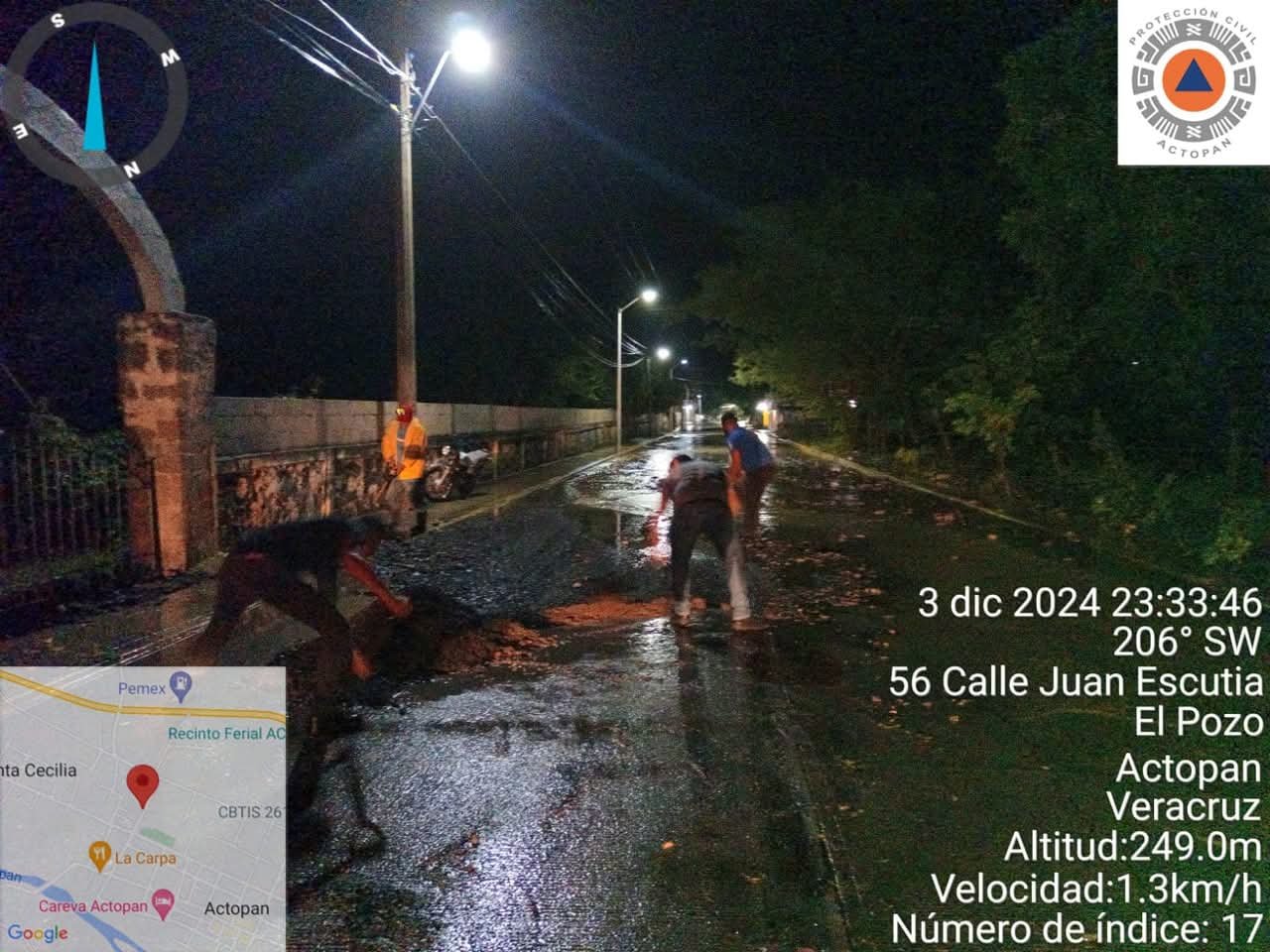 De igual manera, continúan atendiendo las zonas afectadas como la calle Juan Escutia de la cabecera municipal que sufrió el bloqueo por parte de ramas que se desprendieron tras el paso de la intensa lluvia.