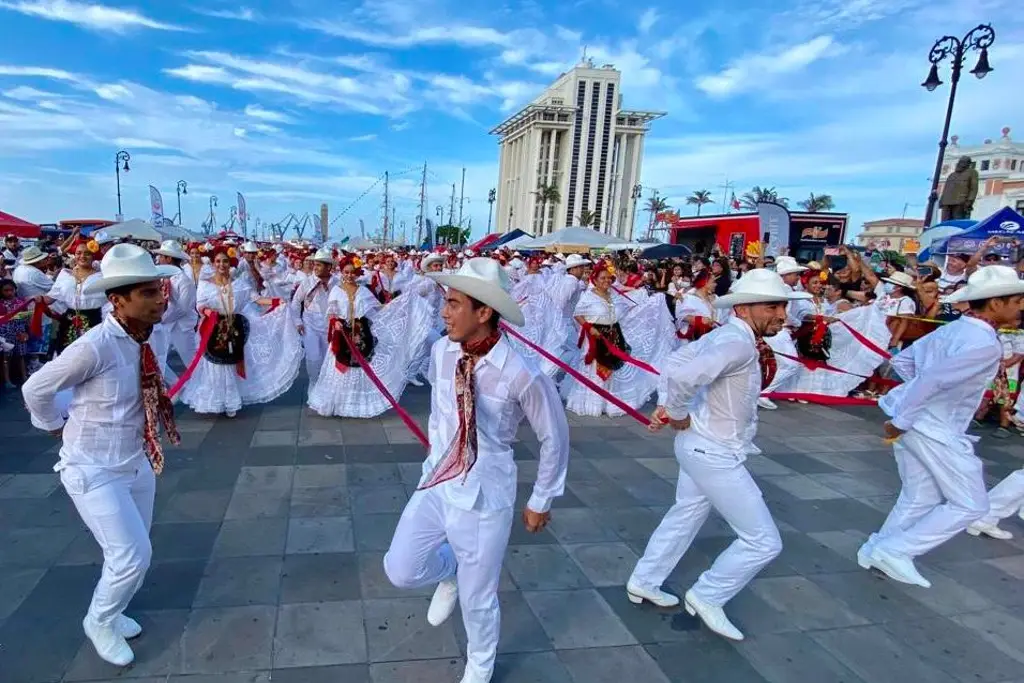 Con la participación de alrededor de 200 bailarines, se tuvo un baile magno este domingo en la Macroplaza del Malecón en este municipio de Veracruz.