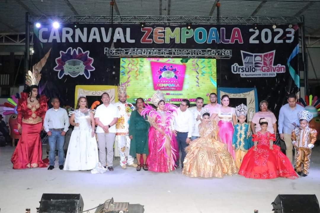 La alegría y la emoción de cientos de personas se volvió a hacer presente el pasado sábado 17 de marzo en la gran coronación de la corte real del Carnaval Zempoala 2023, donde la reina del Carnaval, Xiadani, el rey Rogelio “Base”, los reyes infantiles Ana Victoria y Mario Amaya “Mayin JR”, la reina de la tercera edad, Lupita, los príncipes infantiles, Dayana Alexa y Yurem Tadeo y la reina de la comunidad LGBTTIQ+, Kimora, recibieron su corona como soberanos de estas magnas fiestas.