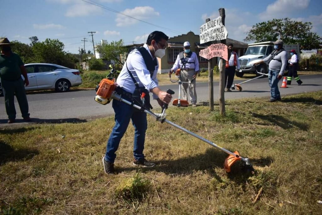 Los habitantes de la localidad de Playa de Chachalacas, celebraron la jornada de limpieza que encabezó el Alcalde de Úrsulo Galván, Licenciado Eder Jero Hernández Lara, este miércoles en la entrada a dicha comunidad.