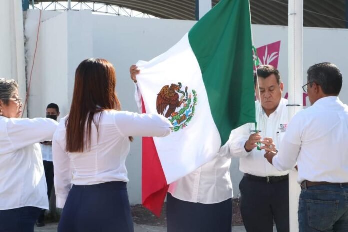 En representación del alcalde Eder Jero, la síndica única, Matilde López Castillo, abanderó a la escolta oficial del H. Ayuntamiento y fue la encargada de izar en todo lo alto a nuestra Bandera Nacional, símbolo patrio que representa el espíritu de la unidad, valor y nos une como mexicanos a través de recordarnos nuestros orígenes como una nación independiente y soberana.