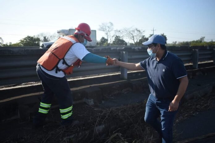 El Alcalde de Úrsulo Galván, Licenciado Eder Jero Hernández Lara, acudió al lugar para supervisar dicha faena y agradecer a la gerencia del Ingenio La Gloria por su colaboración y preocupación por mantener limpias las vías de comunicación.