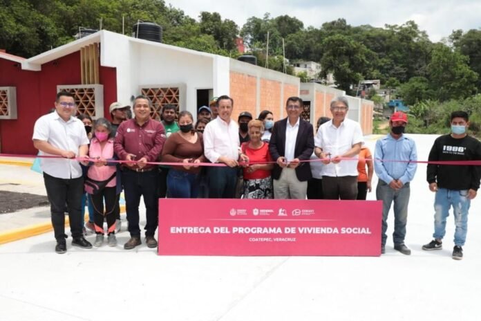 Fue testigo de la entrega de 14 viviendas a familias de Coatepec, afectadas por desastres naturales.