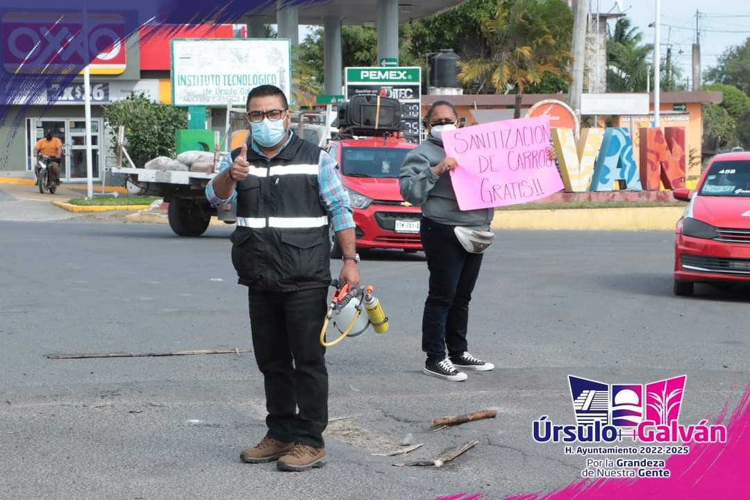 Continuando con las constantes tareas preventivas que el H. Ayuntamiento de Úrsulo Galván realiza para prevenir posibles perjuicios a la salud de la población debido a la pandemia de Covid-19, este viernes la Dirección de Salud Municipal organizó una jornada de sanitización de vehículos en la zona conocida como Tres Caminos.