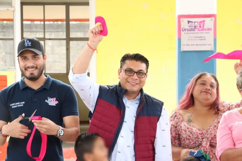 Eder Jero precisó que, para el cierre de este segundo año de gestión, se han invertido dos millones 756 mil 718.72 pesos en obras de infraestructura educativa, como techados, comedores, bardas perimetrales, y recalcó que se beneficia a niñas, niños y jóvenes de distintas comunidades del municipio de Úrsulo Galván.