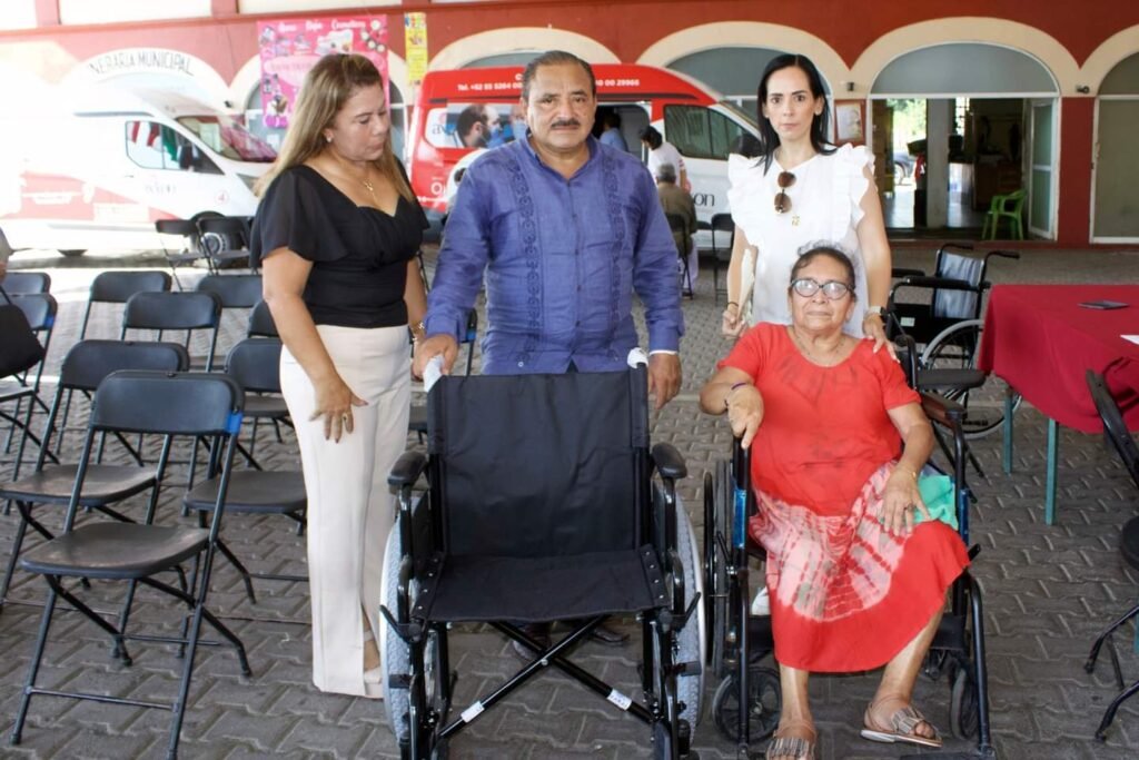 La Sra. Irene Romero Presidenta del DIF Municipal y el alcalde Mario Máfara participaron en la entrega de aparatos funcionales como sillas de ruedas, andaderas, bastones y aparatos auditivos a vecinos de las diferentes localidades con necesidades especiales, estuvieron acompañados de la Síndica Leticia Vivanco y de la Regidora 1ª Guadalupe Portilla.