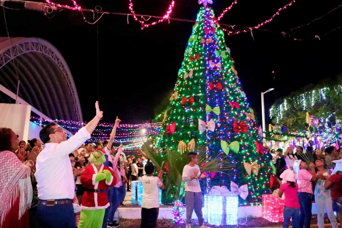 En su discurso, Eder Jero hizo énfasis en el gran esfuerzo que llevó a cabo el personal del H. Ayuntamiento encabezados por la síndica única, Matilde López Castillo, el director de educación, Jacinto Vela Pérez, la directora de IMMUJER, Claudia Utrera Ramírez, el director de servicios municipales, Norberto Grajales Criollo y el director de protección civil, Isaac Rosas Montero; así como a todas las familias, comerciantes, academias de baile y planteles educativos por hacer posible la iluminación y decoración de la villa iluminada y el árbol navideño, felicitándolos y reconociendo su gran dedicación.