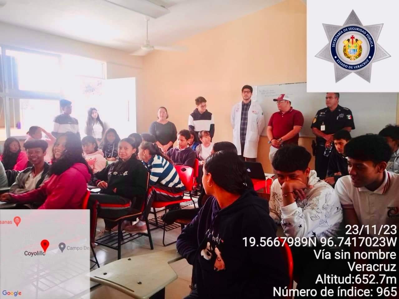 Por ello la Policía municipal, acompañados del sistema DIF, realizaron una charla preventiva sobre adicciones y bullying a estudiantes del Telebachillerato de Coyolillo.