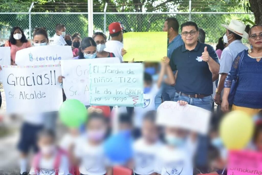 Los alumnos recibieron al Presidente Municipal y a los ediles con pancartas de agradecimiento por ser tomados en cuenta después de mucho tiempo en espera.