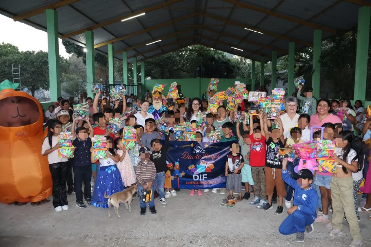De la mano del síndico Paco Palmeros, de la regidora Olga Hernández y en coordinación con el DIF Municipal, con su presidenta Marisol Gutiérrez y su directora Circe Fontes, llevaron la magia del Día de Reyes a distintas comunidades de Puente Nacional.