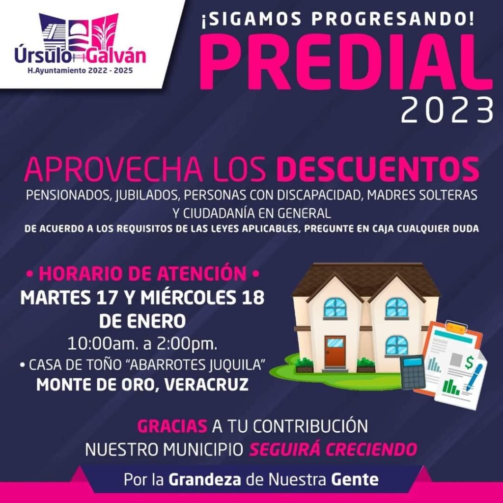Por instrucciones del alcalde, Licenciado Eder Jero Hernández Lara, se instalarán dos nuevos módulos de cobro del impuesto predial en las localidades de Jareros y Monte de Oro, para el próximo martes 17 y miércoles 18 de enero.