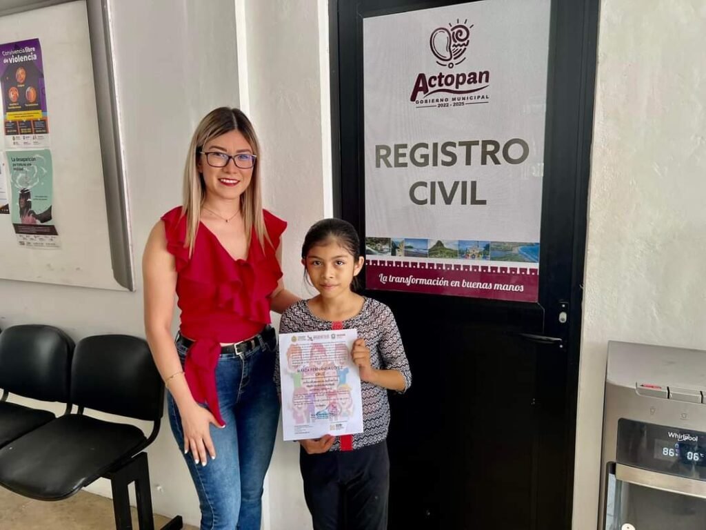 La pequeña María Fernanda Cruz López fue nombrada de manera simbólica como Oficial del Registro Civil por un día para el municipio de Actopan.