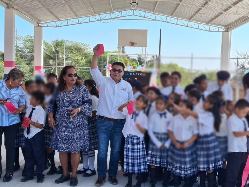 Beneficiando a los estudiantes de la escuela primaria «Moisés Sáenz» de la comunidad de Playa de Chachalacas, el pasado lunes 25 de noviembre, el alcalde, Lic. Eder Jero Hernández Lara inauguró el nuevo techado en la cancha de este plantel, brindando un espacio digno para las actividades de los alumnos.