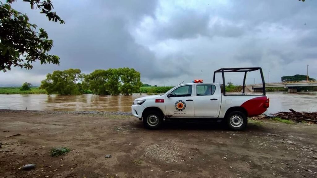 La dirección de Protección Civil realiza recorridos en el río la Antigua a la altura de la colonia Yucatán perteneciente el municipio de Paso de Ovejas para monitorear el crecimiento del río.