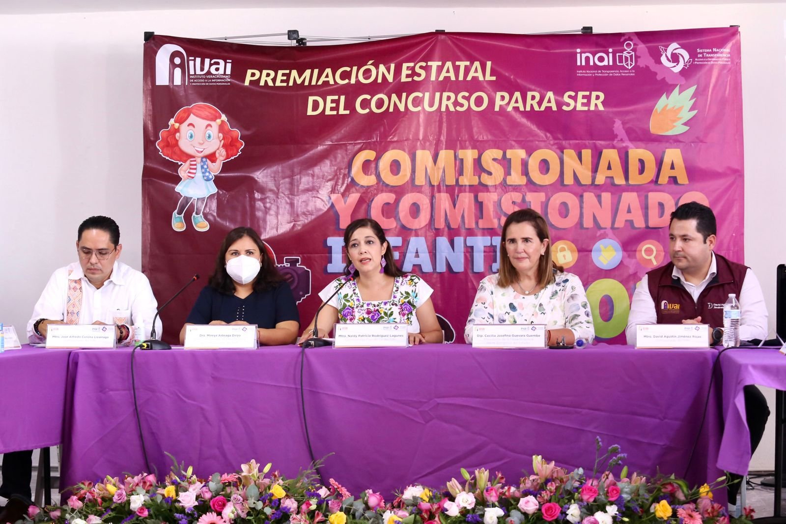 Cecilia Guevara presenció la ceremonia de Premiación del ‘Concurso para ser Comisionada o Comisionado Infantil y formar parte del Pleno Niñas y Niños 2022’, del Instituto Veracruzano de Acceso a la Información y Protección de Datos Personales (IVAI) en Veracruz, donde felicitó a los ganadores.