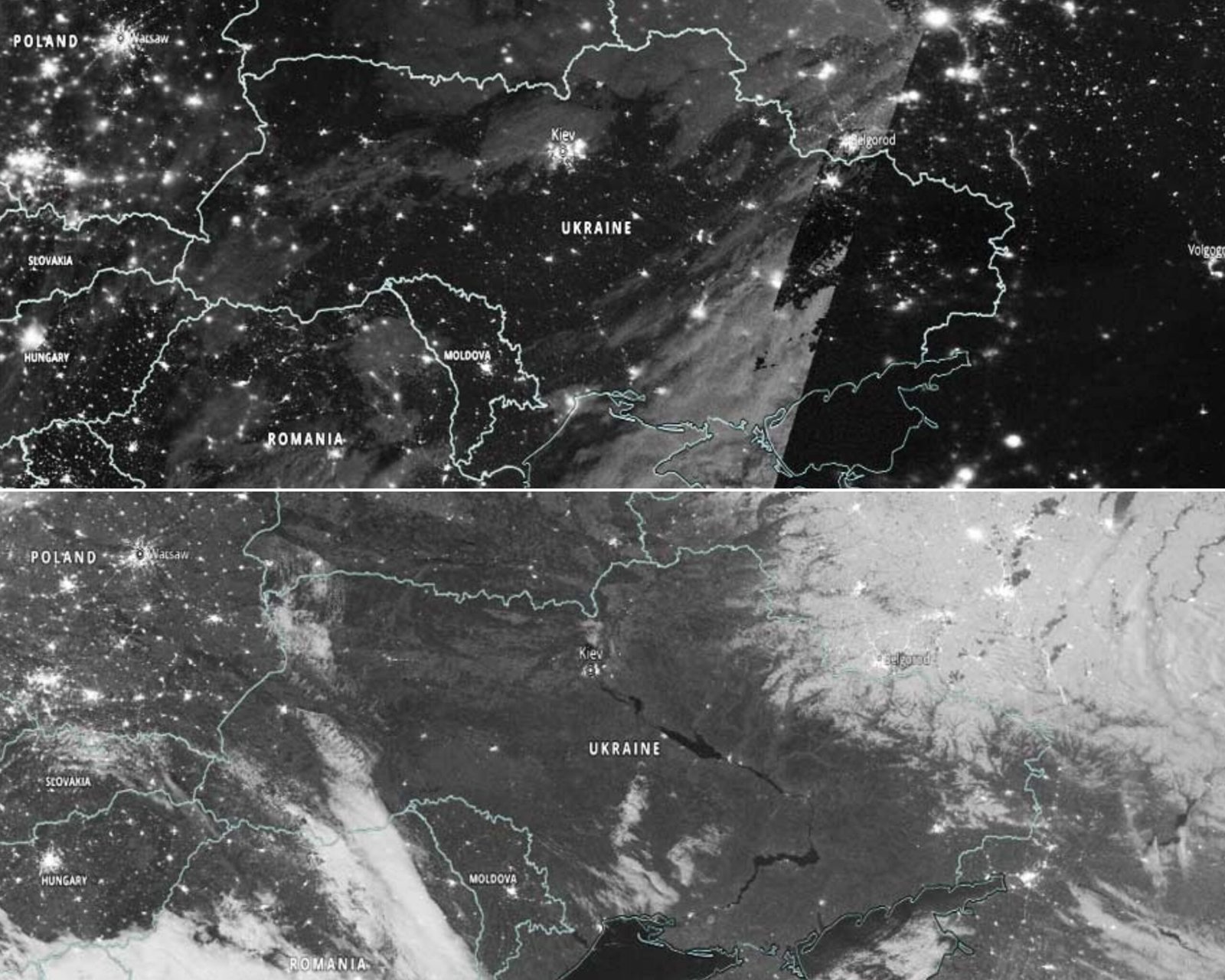 Ucrania queda a oscuras tras invasión rusa imágenes de la NASA revelan cómo luce