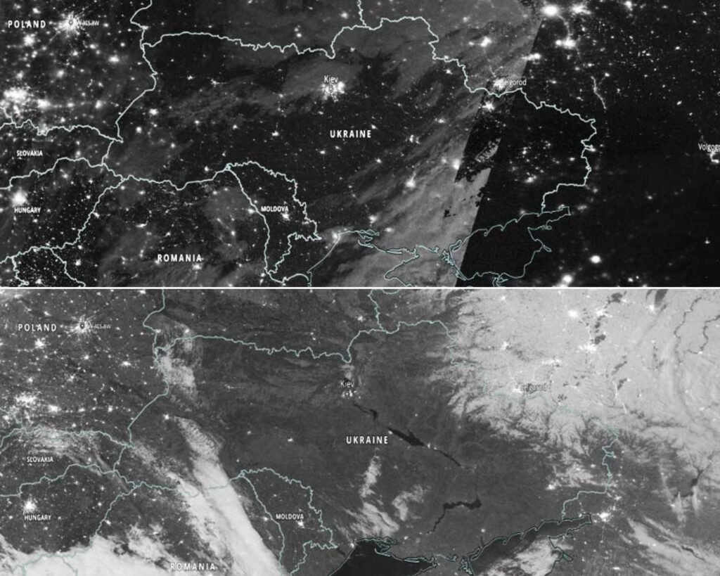 A 21 días de la invasión rusa a territorio ucraniano, imágenes satelitales tomadas por la Administración Nacional de Aeronáutica y del Espacio (NASA) mostraron cómo Ucrania quedó sumida en la oscuridad tras la intervención extranjera.