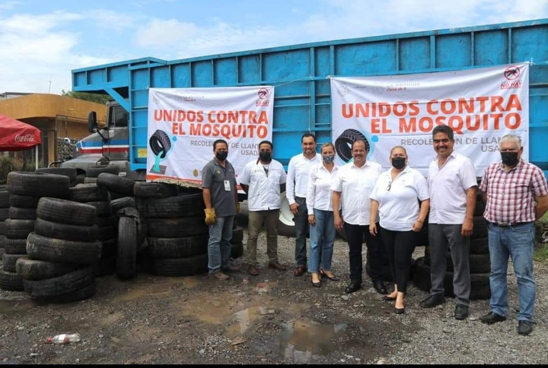 La campaña de descacharrización «Unidos Contra el Mosquito», organizada por el H. Ayuntamiento de La Antigua ha sido todo un éxito, y este martes se lograron recolectar un total de 328 llantas usadas.