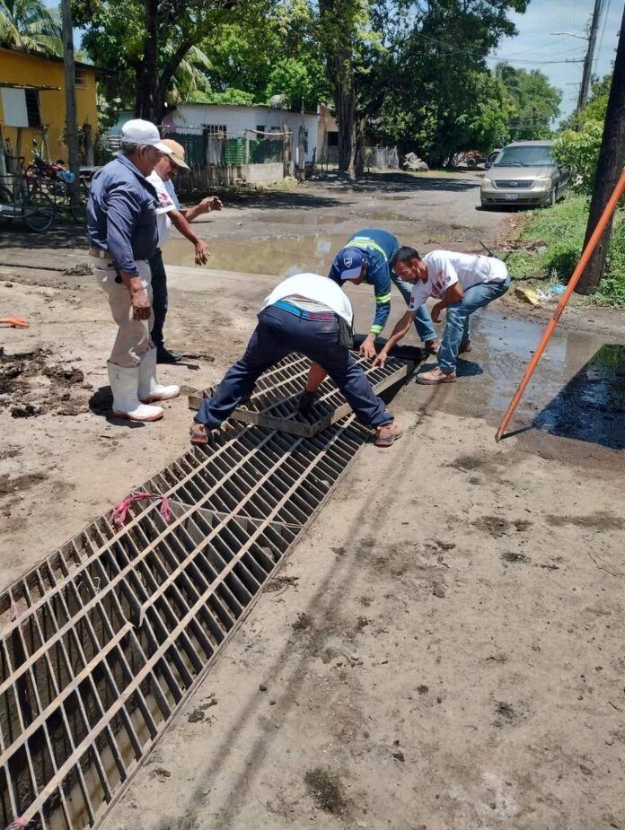 En Cempoala se desazolvaron «tragatormentas» en las inmediaciones del cementerio hasta la Zona Arqueológica, beneficiando a colonias como Teodoro Mejía, La Paz, el Dorado, entre otras, así como limpieza en canales pluviales.