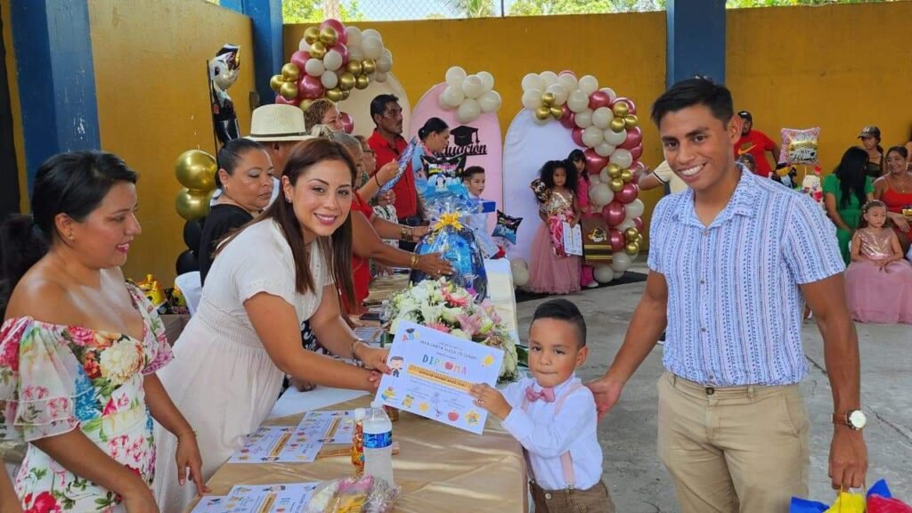 Como parte del cierre del ciclo escolar 2022-2023, este martes 11 de julio del presente año, la presidenta del Sistema Municipal del DIF, Vianney Hernández Vizuet, asistió a la clausura de fin de cursos del Jardín de Niños “Margarita Maza de Juárez”, en la localidad de Barra de Chachalacas.